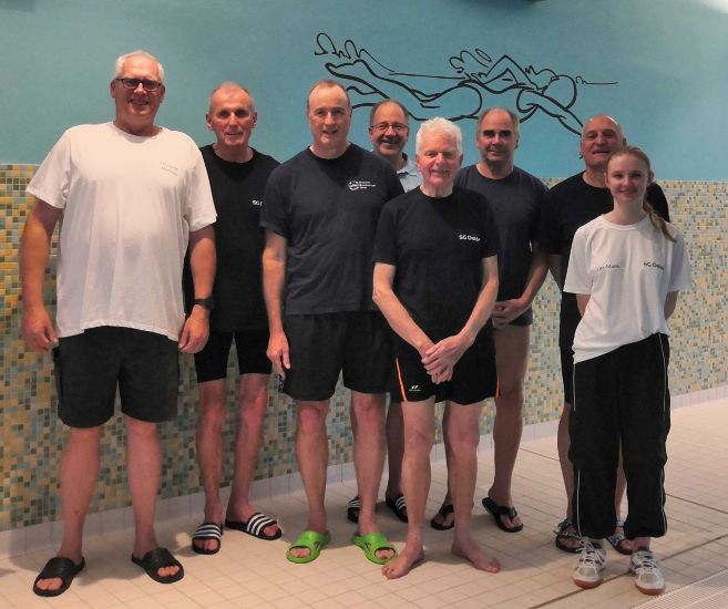 Am vergangenen Samstag richtete die SC Steinhagen-Amshausen das 45. internationale Masters-Schwimmfest aus, an dem Schwimmerinnen und Schwimmer von 23 Vereinen aus dem Landesschwimmverband Niedersachsen und Nordrhein-Westfalen teilnahmen. Für die SG Oelde gingen insgesamt sechs Schwimmer an den Start. Zudem unterstützten Lea Brand und Matthias Horstmann als Kampfrichter. Die Bilanz lässt sich durchaus sehen: ein OWL-Altersklassenrekord, zwölfmal Gold, dreimal Silber, einmal Bronze und kein Start ohne eine Platzierung unter den Top drei.